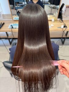 うねりがあると光が乱反射してツヤが出にくいですが、縮毛矯正をすることで表面のキューティクルが整い光を綺麗に反射しやすくなり、ツヤが出てくれます。